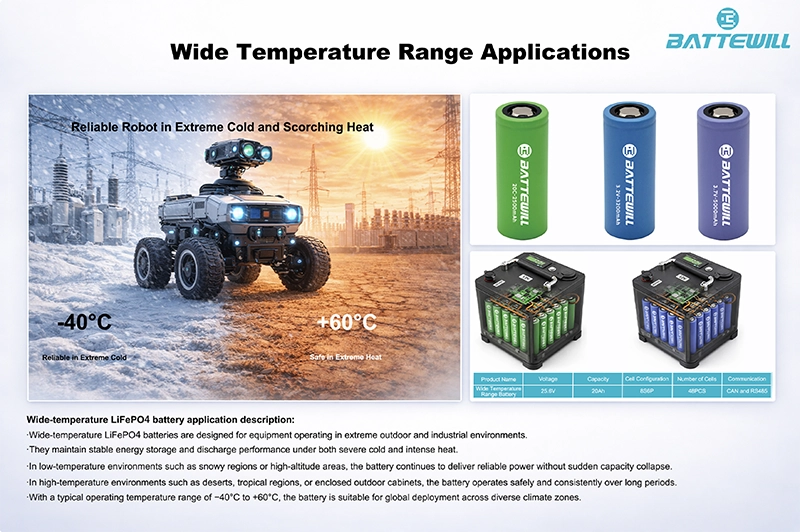 We supply LiFePO4 batteries, ternary lithium-ion batteries, and specialty cells for high/low temperature or military-grade applications.